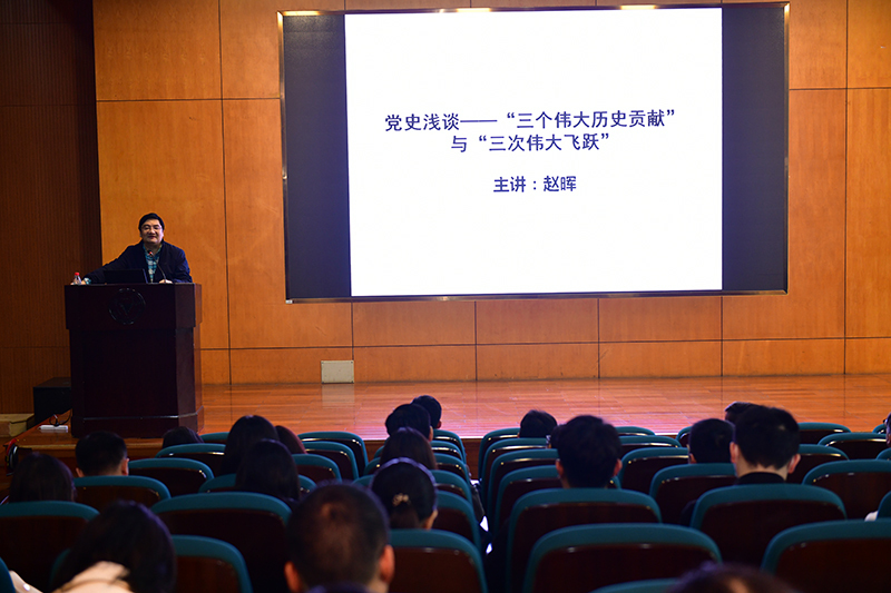 浙江大学马克思主义学院中国近现代史纲要教研中心主任赵晖,作题为“三个伟大历史贡献与三大伟大飞跃”的党史辅导报告,“从20世纪40年代完成社会转折,实现中国几千年封建专制政治向人民民主的伟大飞跃”,“20世纪50年代完成制度转变,实现中华民族由不断衰落到根本扭转命运、持续走向繁荣富强的伟大飞跃”和“20世纪70年代末开始经济体制转轨和形成对外开放格局,实现了中国人民从站起来到富起来、强起来的伟大飞跃”的三个方面,与参会党员共同回顾我党带领人民探索中国社会主义现代化道路历程。