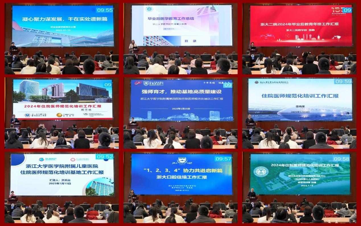 毕业后医学教育办公室作年度工作报告,总结了2024年住院医师规范化培训和临床医学博士后工作,并提出了2025年工作重点。各附属医院教学部分别作年度工作总结,展示了各院的“十佳带教老师”“优秀住院医师”的卓越业绩,分享了“十佳专业基地”的特色和做法。