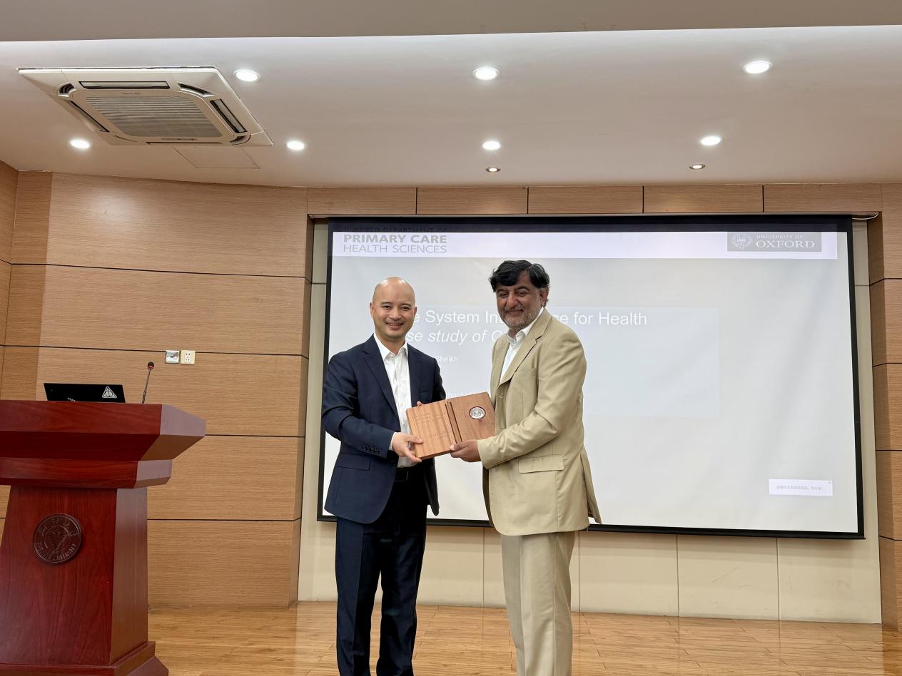 在论坛上,Sheikh教授作题为“全系统智能促进健康”的学术报告。他首先指出英国在推动健康系统智能化过程中所面临的挑战,包括医疗数据碎片化、管理标准缺失及实时数据分析能力不足等关键问题。以COVID-19大流行为切入点,Sheikh教授进一步介绍了其团队如何将数字技术创新性地应用于公共卫生实践。具体包括:利用公共平台数据结合居民自报症状,开发热力图识别伦敦东部Delta变异株早期传播区域;在苏格兰全人群数据平台基础上开展疫苗有效性队列研究;追踪并分析COVID-19相关副作用疾病的早期信号;以及借助社交媒体开展情感分析,为政府决策提供社会情绪的量化依据。在推动数字公共卫生的同时,Sheikh教授强调数据伦理与全球协作的重要地位。他提出,应建立动态治理框架,如设立“数据监护人”制度,以更好地在科研需求与个人隐私之间实现平衡。